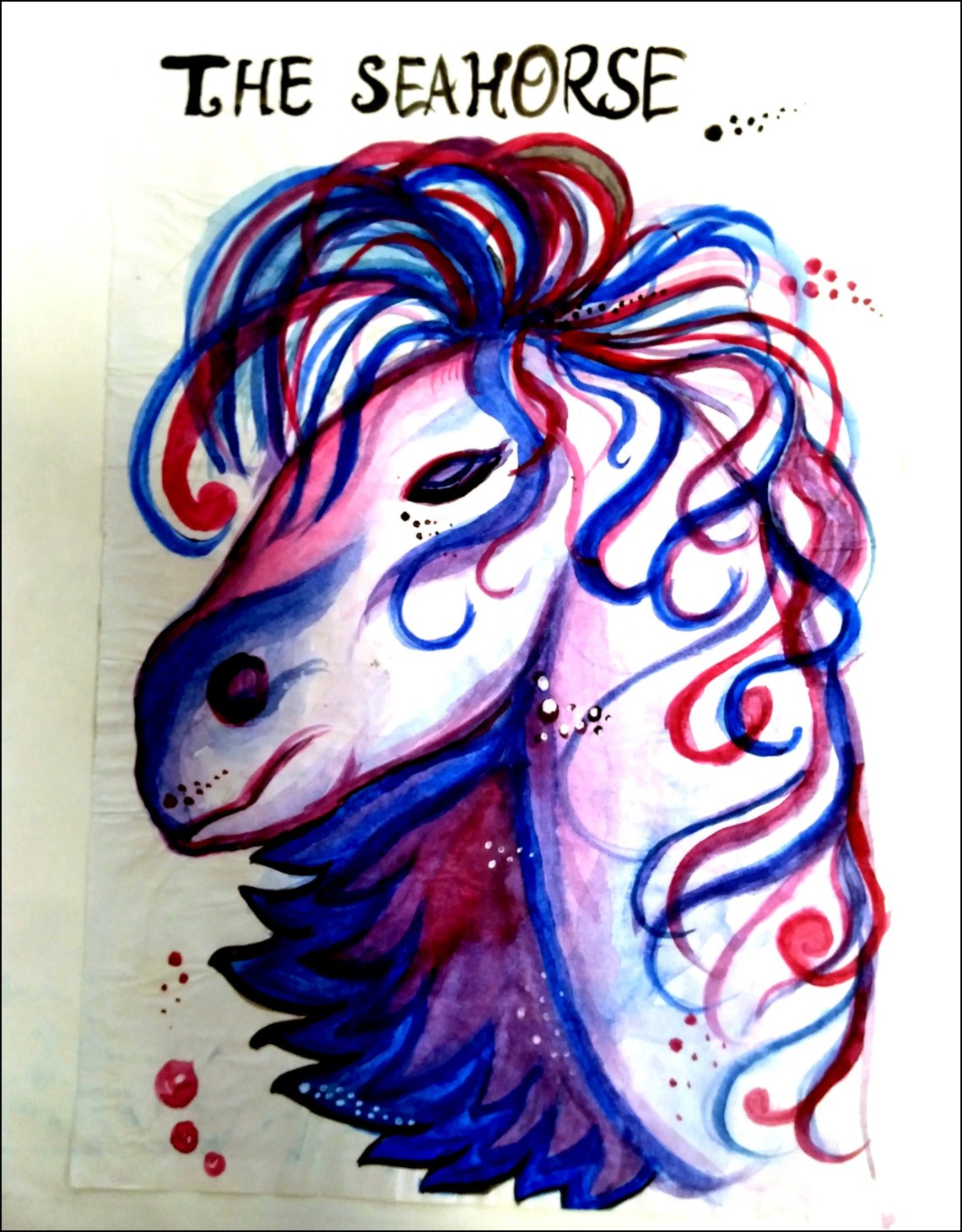 Using the same colour swatches, I turned the painting to represent a sea horse with vibrant shades of blues and hot pink. It was kind of difficult to make those shades back again and get the same swatch colour. But somehow I tried to match it.