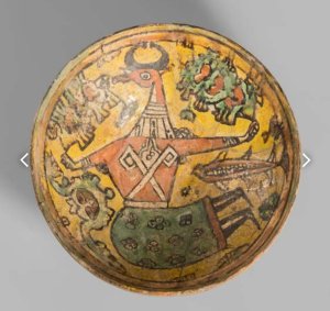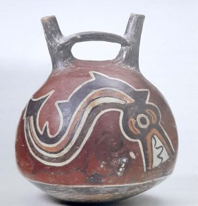 ( Eartheware painted with coloured slips and burnished, Peru )